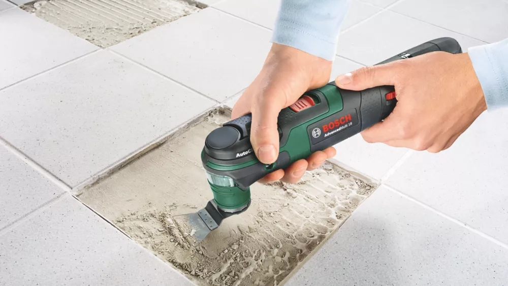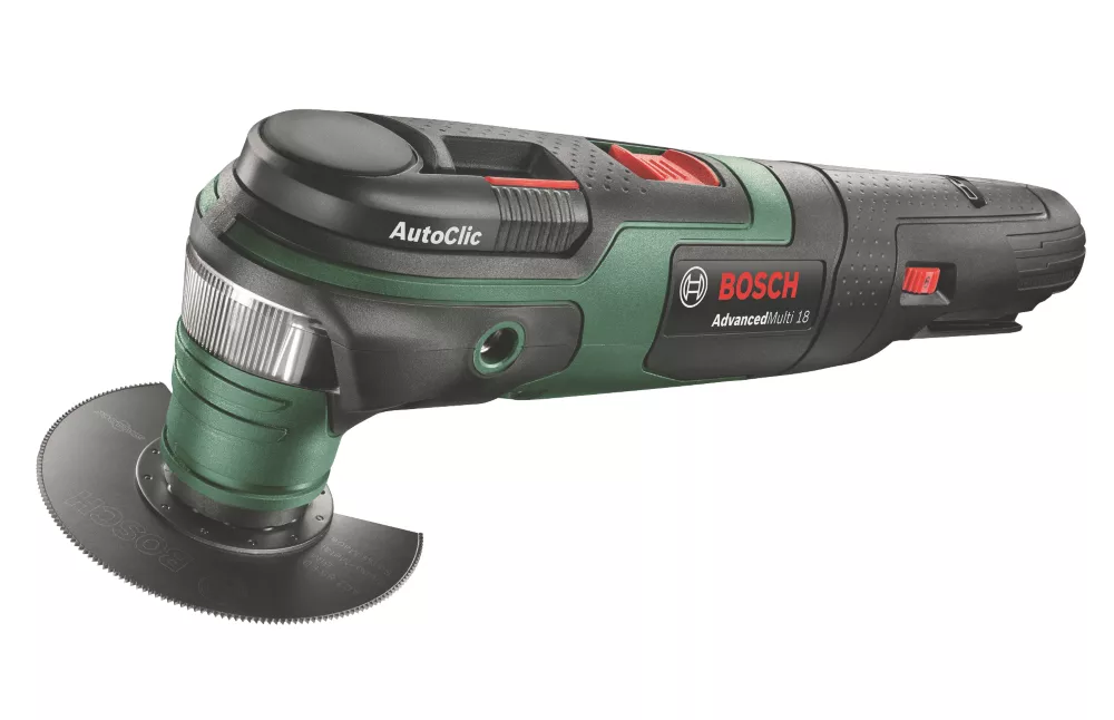 Versatile, 18V multifunction oscillating tool for a wide range of DIY projects. Features powerful motor and electronic speed preselection, enabling speeds to be matched to the needs of each job and material. Bosch AutoClic allows easy, keyless 3-second accessory changes and the 180° light band provides consistent illumination. Compatible with a range of optional Starlock accessories to cover a multitude of applications. Suitable for cutting, sawing, sanding, scraping, routing, and polishing on wood, metal, plastic, plasterboard, grout, and mortar. Part of the Bosch Green Power for All alliance system, where an 18V battery can operate a large variety of tools from different brands (battery sold separately).