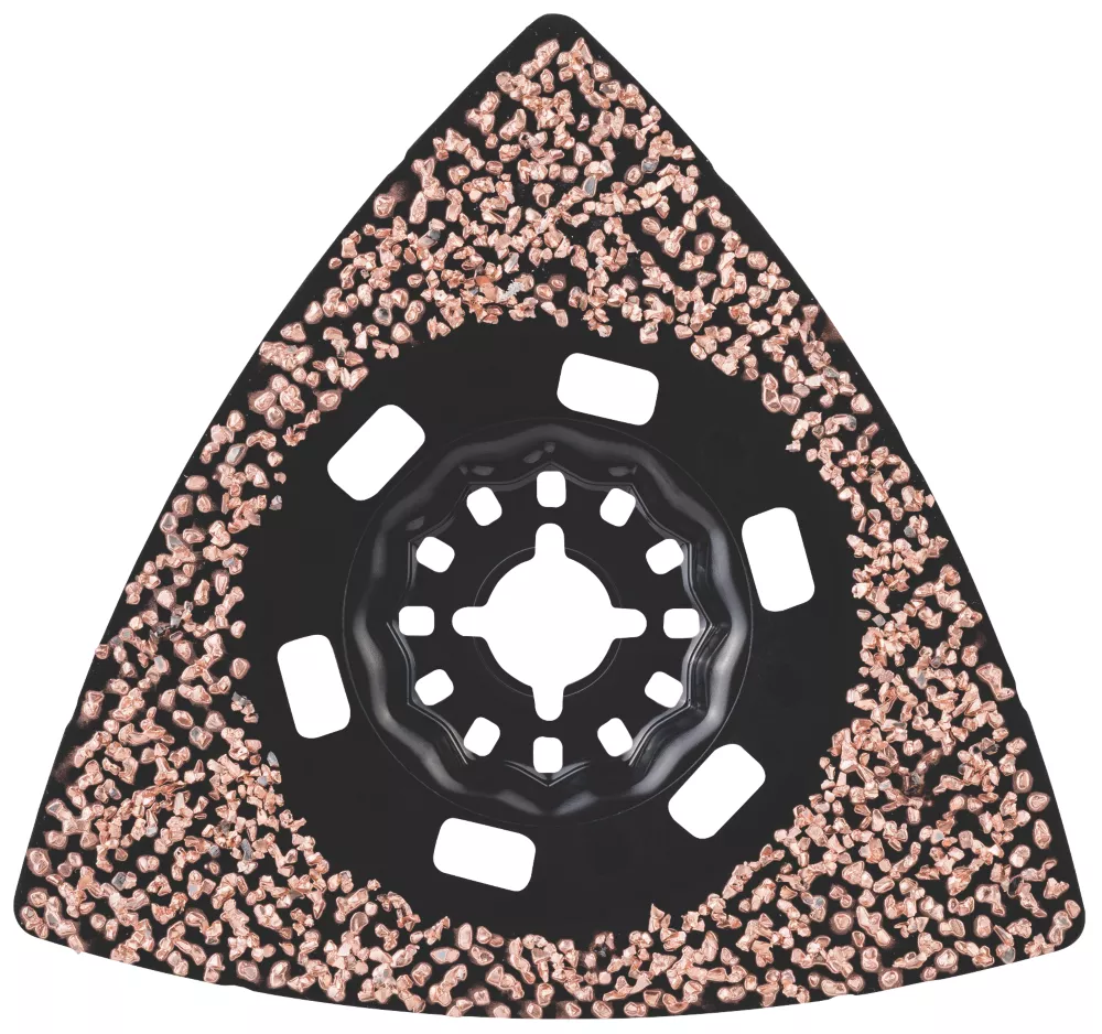Grits of the hardest metal are robustly fixed to the surface using carbide technology for durability. Clean grit with a solvent so it stays effective and for long life. Designed for multiple materials such as tile mortar, glue residue and for rough shaping of wood. Starlock mount for maximum power transfer and convenient blade change within seconds.