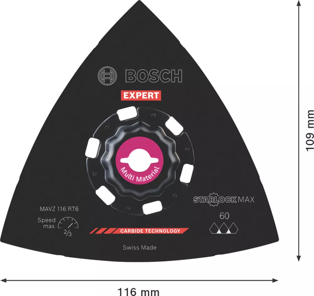 Provides extra-long life performance on mortar and tile adhesive. Coated with high-quality carbide for wear resistance. An open-coat coating allows for aggressive material removal without clogging or build up. Special mounting system produces high power transfer with 3-dimensional connection between machine and accessory. Ideal for removing thick layers of paint and lacquer as well as mortar and glue residues from wooden materials and wood-plastic composites. Can be used for rasping weathered wood and perfect for sanding applications on epoxy and carbon fibre. Suitable for all Starlock Max multi-tools.