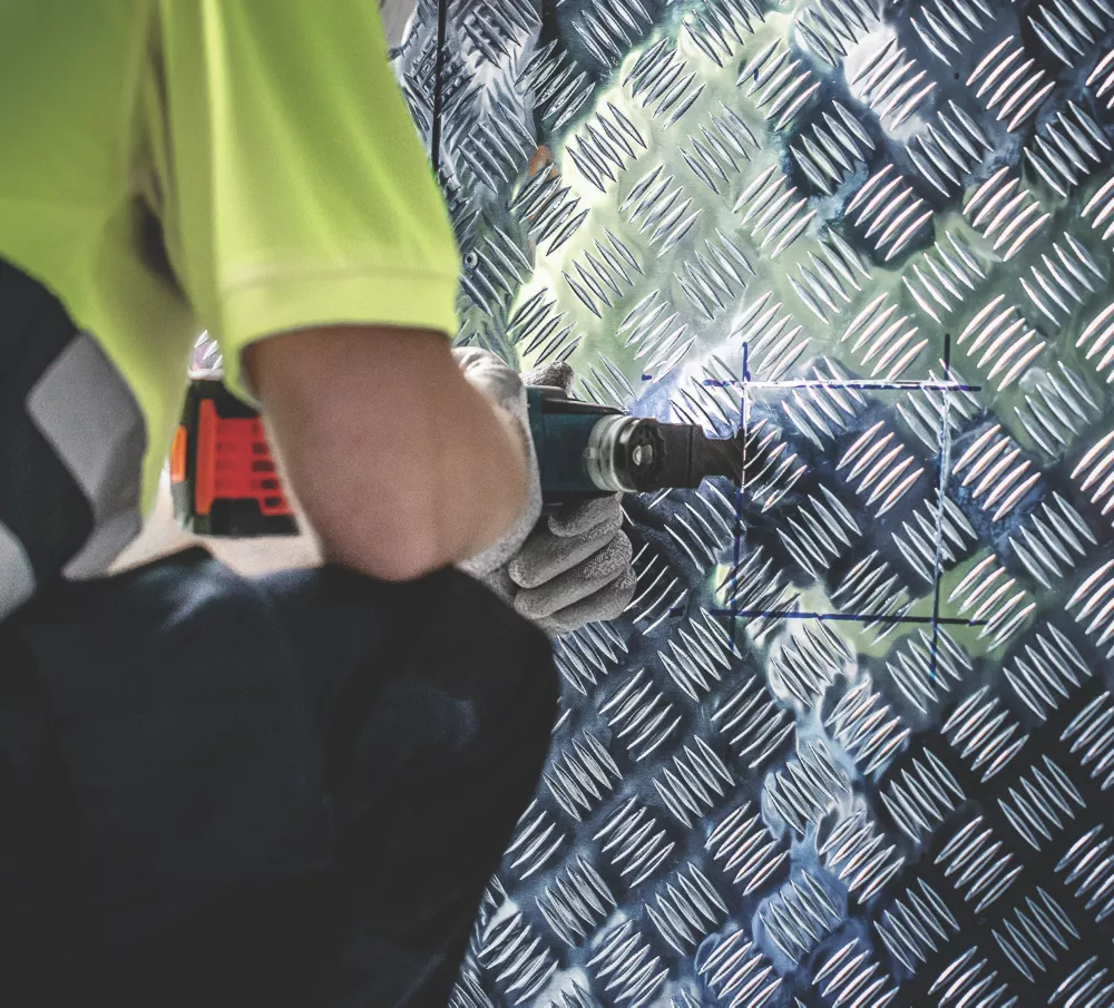 - Cuts Stainless Steel Sheets, Fibre Plastics, GFK, CFK, Fibre Cement Boards & Brick