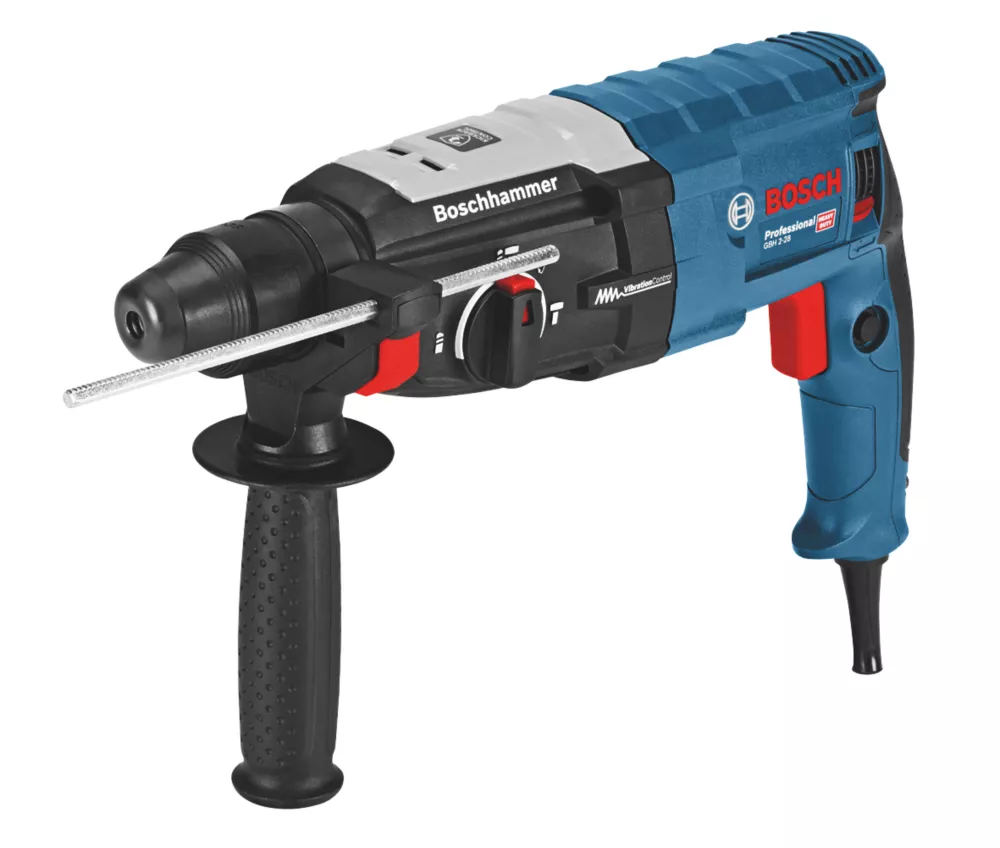 Powerful SDS plus drill with a range of safety features. Intelligent kickback control sensor stops the motor in the event of accidental tool kickback. Active vibration control reduces vibration allowing longer permitted use. Ball grommet enhances convenience and prevents cable damage. Metal gear cover provides extra durability. Rotating brush plate produces constant power in forward and reverse. Lock-on switch allows easy continuous chiselling work. Supplied with auxiliary handle, depth gauge, cleaning cloth and L-Boxx storage case.