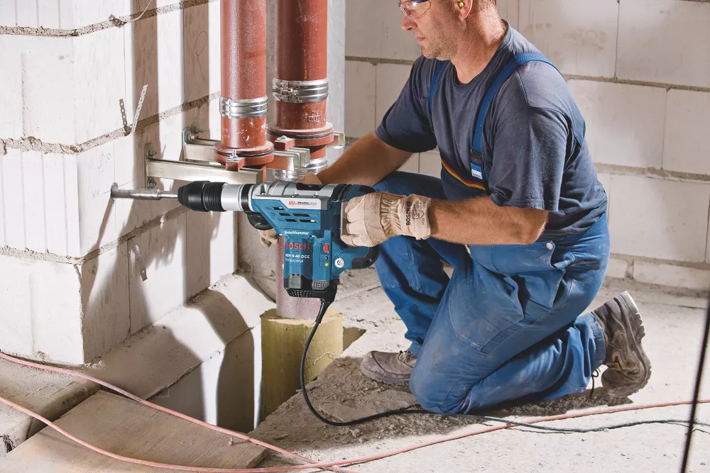 Professional SDS max corded rotary hammer. Features robust metal components and optimised lubrication system. Vibration control and lightweight design for comfortable user handling and reduced fatigue, ideal for time-intensive tasks. Powerful motor delivers 8.8J of impact energy for fast drilling progress and high material removal rate. Supplied with carry case.