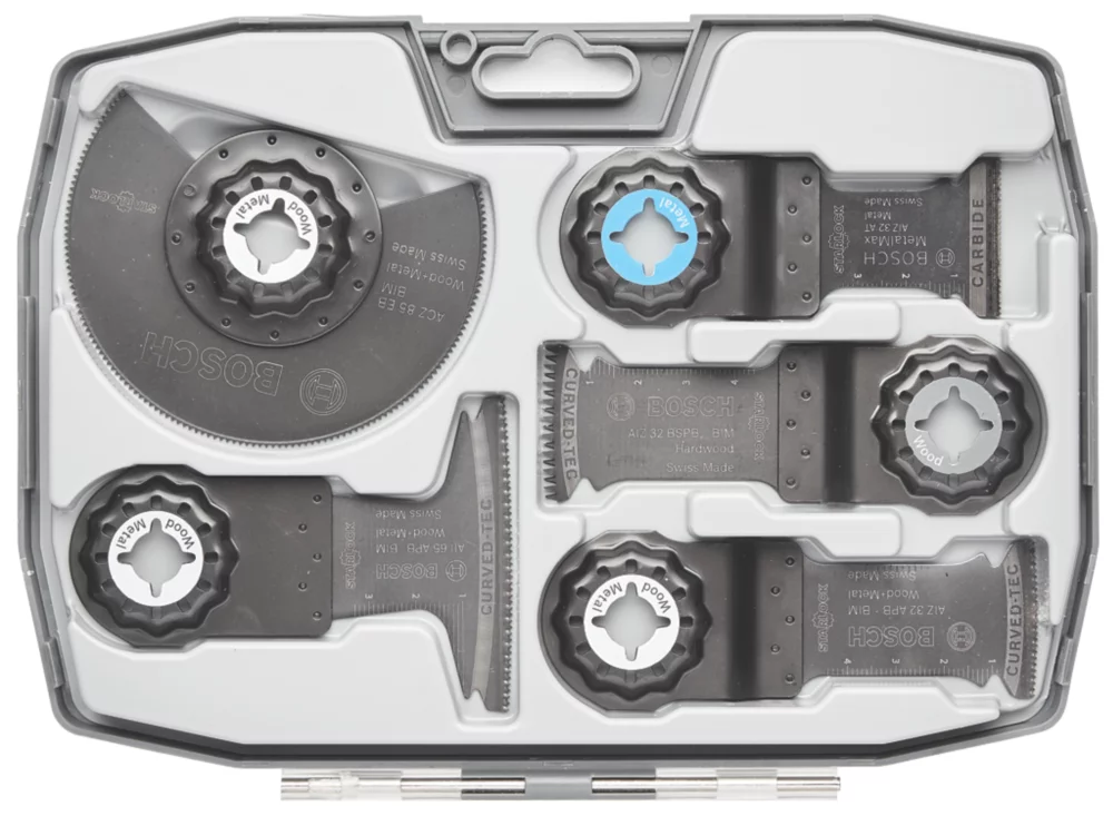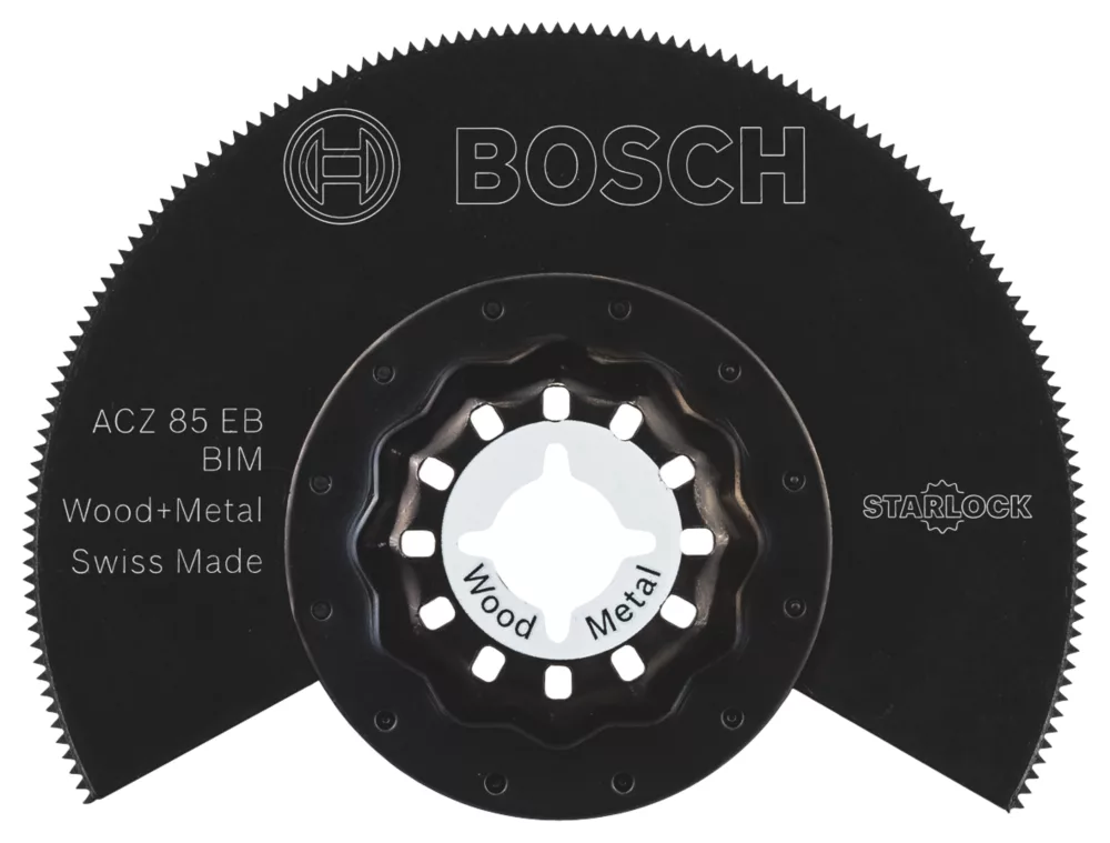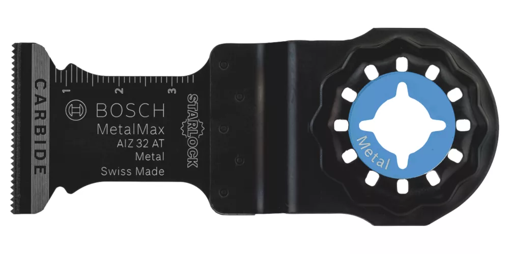 Ideal for sawing softwood, hardwood, chipboard, laminate, parquet, soft plastics, sheet metals up to 1 mm, non‐ferrous metal profiles, hardened metal and putty material. Starlock Snap‐In mounting system enables fast blade removal and exchange within 3 seconds without having to touch the blade. 3‐dimensional tight‐fitting connection between machine and accessory produces the highest power transfer. All blades are suitable for use with Starlock, Starlock Plus, Starlock Max or OIS multi‐tools.