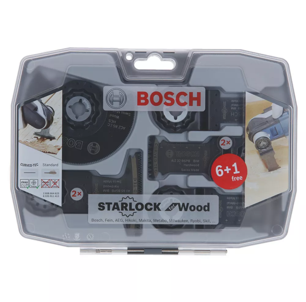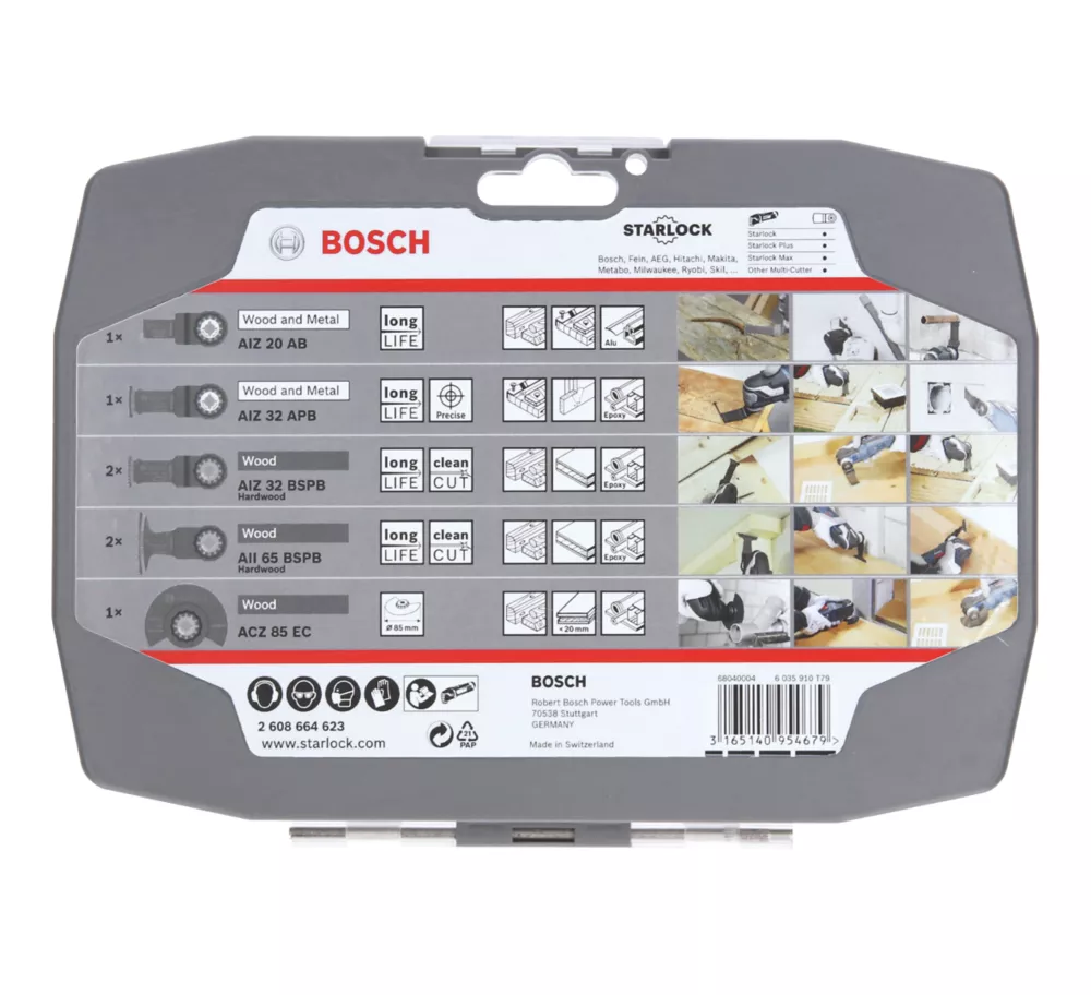 Versatile Starlock multi-tool blade set for professional craftsmen and DIY enthusiasts. Creates quick and accurate work with hard / solid wood, polyvinyl chloride, laminate, coated plate, plywood panel, parquet and drywall. Features Starlock snap-in system for quick blade change without having to touch the blade. Starlock fitting system provides maximum power transfer between machine and accessory enabling a greater range of applications. Suitable for use with Starlock, Starlock Plus, Starlock Max or OIS multi-tools.