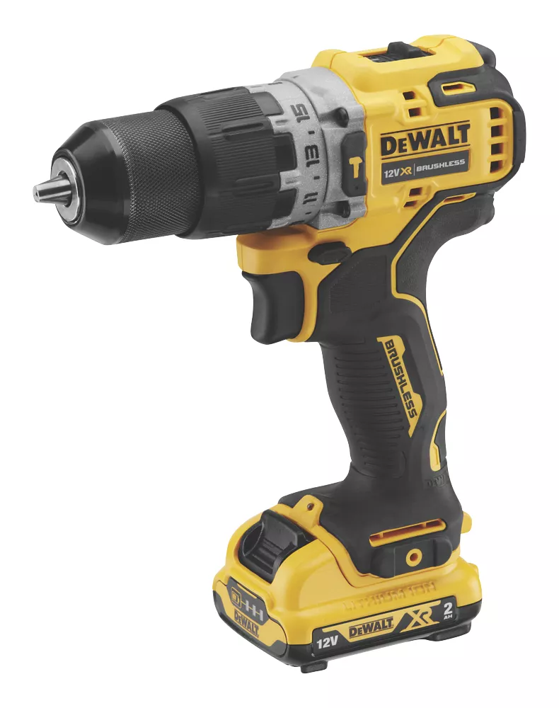 Compact combi drill with efficient brushless motor, providing 57.5Nm of torque as well as 15% more run time than previous DeWalt models. Features indicator to monitor how much battery charge is remaining.