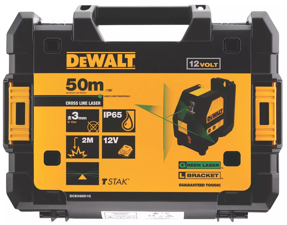 Tough self-levelling cross-line laser with integrated magnetic pivoting base. With bright green beam for excellent visibility up to 30m or 60m when used with a detector. Locking pendulum to help prevent damage to internal components. Battery charge indicator and variable blink sequence for manual mode. Uses 12V XR Li-ion batteries.