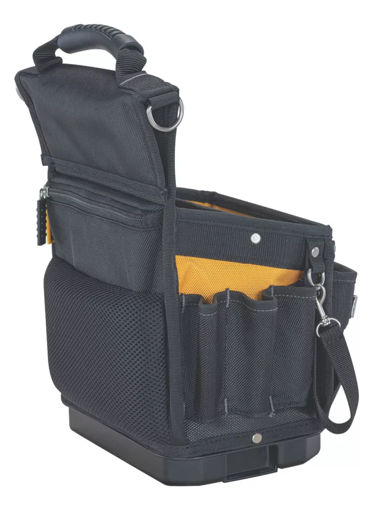 Technicians bag with multiple layers of pockets for maximum organization and easy access of tools. The 1680 denier ballistic nylon and rivet enforcements ensure maximum strength and resistence to wear and tear. The sturdy waterproof base is compatible with TSTAK organizers and PTA cases.