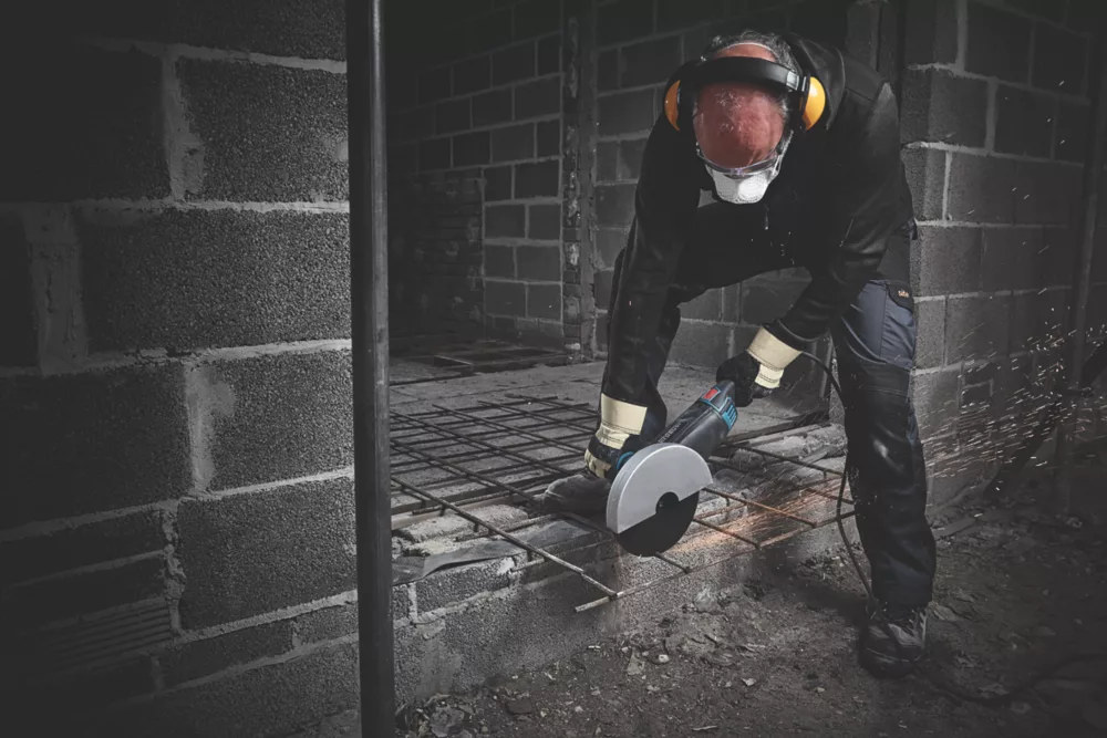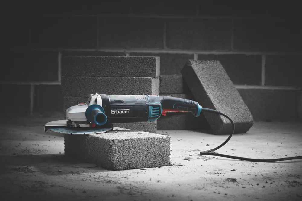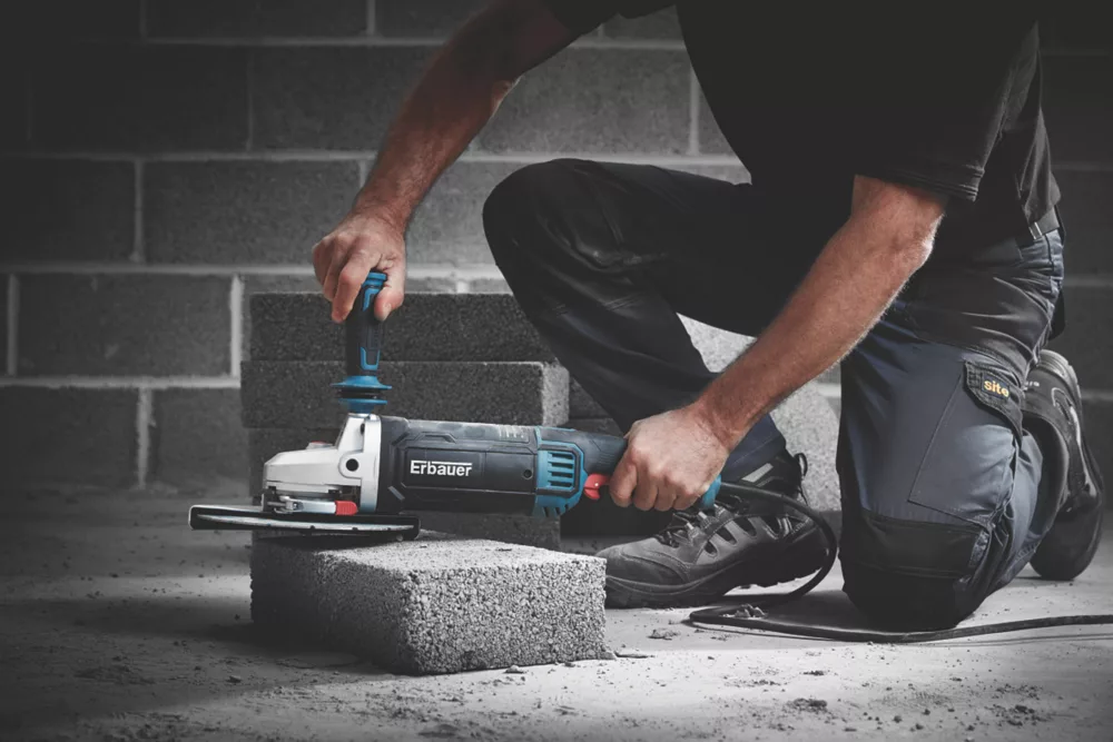 Angle grinder with spindle lock for easy disc change. Tool-free guard adjustment ensures easy and fast guard change. Anti-vibration auxiliary handle provides increased comfort and control. Includes grinding and cutting guards. Rotatable rear handle for improved control at angles. Supplied with carry case.