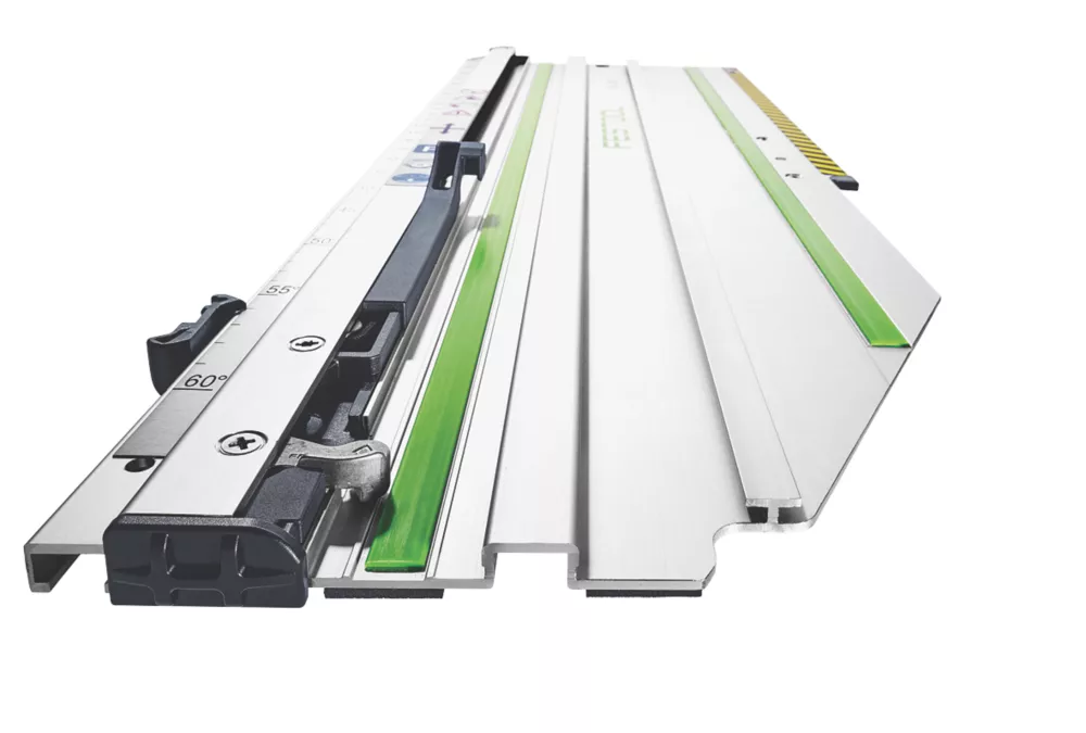 Makes work easier with fast, guided and precisely-angled cross cuts. Stop-system for accurate repeated angled cuts. Retract function returns the saw to start position after sawing. Adhesive cushion strip protects the workpiece surface from being damaged. Slideway lining for easy movement of the machine on the trimming rails.