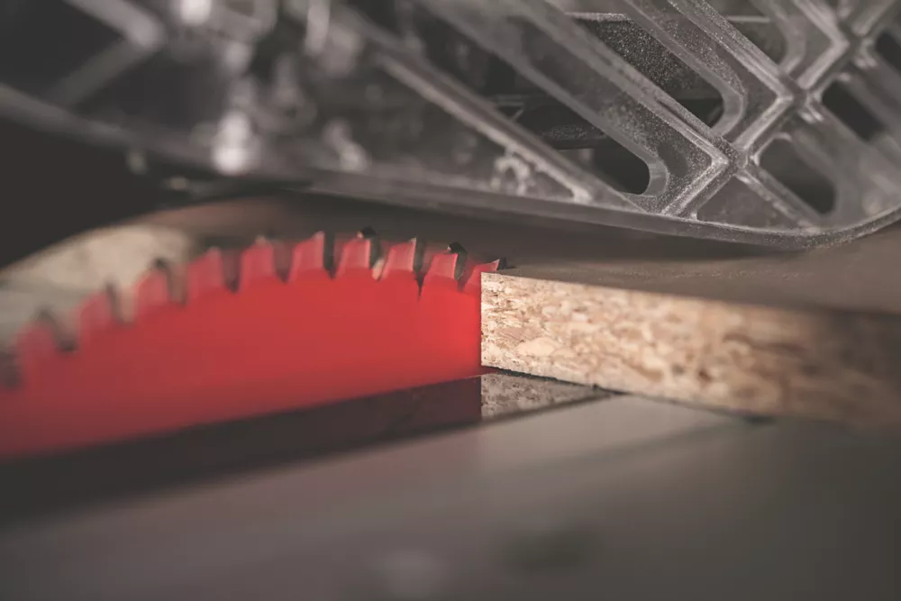 Table saw blade, suitable for cutting high pressure laminate and Corian. Compact Titanium Cobalt Carbide (TiCo) offers a sharper edge, flawless finish and longer cutting life. Perma-shield non-stick coating withstands the toughest applications, providing thermal insulation, protecting from corrosion and eliminating resin build-up, reducing downtime for cleaning. Features rolled-in tension ring and expansion slots for blade stability and accuracy, tri-metal shock-resistant brazing alloy to withstand extreme impact and premium steel body for precision and endurance. Laser-marking on each blade shows relevant applications for easy and immediate identification.