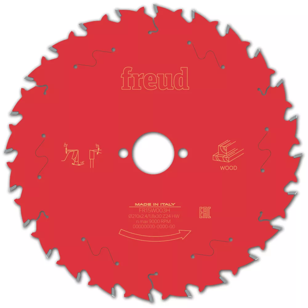 Premium steel body for precision and high endurance. Made for handheld saws, ideal for cutting hardwood, softwood, plywood, chipboard and MDF. A specially formulated, highly compact Titanium Cobalt Carbide (TiCo), engineered and manufactured by Freud, provides a sharper edge and flawless finish with a dramatically longer cutting life. Perma-Shield technology is a non-stick coating formulation that withstands the toughest applications. Provides thermal insulation, protects from corrosion and eliminates resin build-up, reducing downtime for cleaning. Specially designed anti-vibration slots enable smooth running and minimised noise. Tri-metal shock-resistant brazing alloy consists of copper wrapped between silver layers to withstand extreme impact. Application material laser-marked on blade for easy and immediate identification. High blade stability and accuracy due to the special rolled-in tension ring and expansion slots.