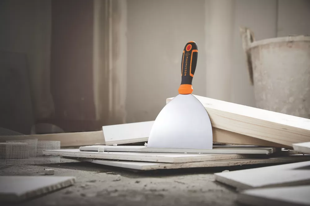 Jointing knife with an ergonomically-designed soft-grip handle for a comfortable and controlled grip. Easy to use with a flexible full-length tang which improves balance and durability. Stainless steel constructed blade for rust resistance and longevity. Ideal for drywalling applications, scraping and smoothing jointing compound.