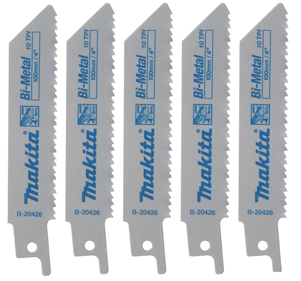 Compact reciprocating saw blades suitable for use on both wood and metal 3-12mm thick. Designed for use with the Makita JR100, JR102 DJR18 3and DJR185 compact cordless reciprocating saws. Suitable for use with reciprocating saws made by other power tool manufacturers.