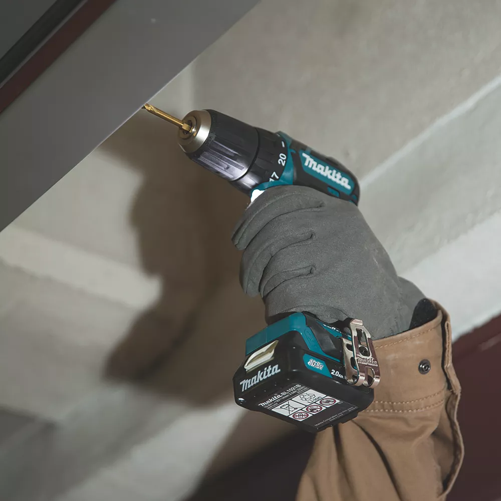 Compact design and a soft-grip handle allow comfortable use. Mechanical 2-speed gearbox and variable speed trigger control result in an impressive drilling capacity of 10mm into steel and 21mm into wood. Keyless chuck and LED work light with pre-glow and afterglow functions.