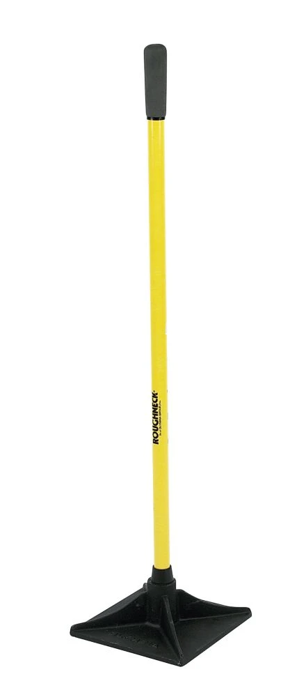 Large, reinforced cast iron base plate and fibreglass handle with comfort grip.