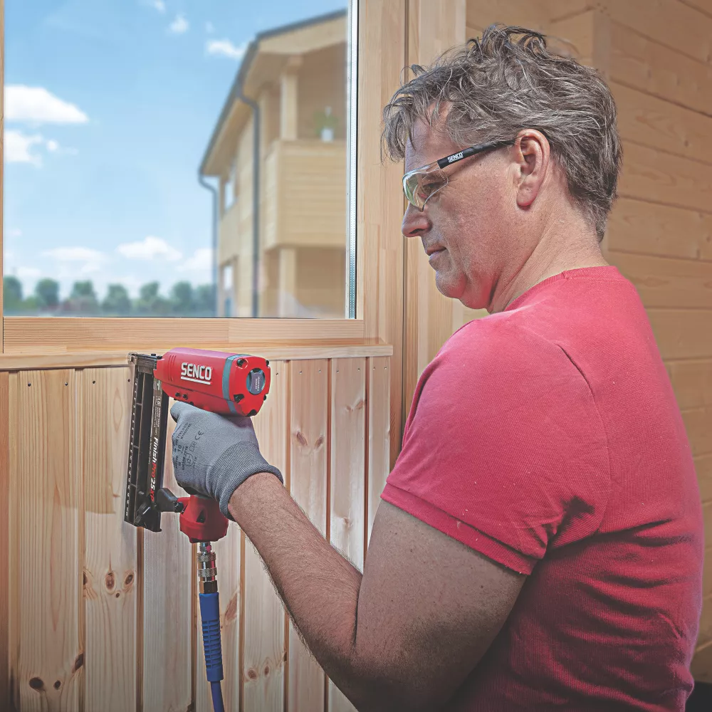Drives both slight and medium headed 18g brads from 16 to 55mm into the hardest of woods. On-tool power adjustment allows the user to increase power by 30%. NeverLube technology keeps work surfaces oil free. Over mould comfort grip and over mould trigger. 360° adjustable exhaust and belt hook. Lightweight for easy manoeuvring and all day work.