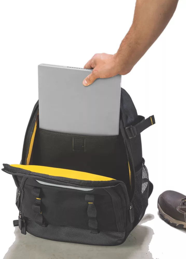 Heavy duty 600 Denier fabric for long lasting durability and weather resistance. 2 padded shoulder straps and a padded back for a weightless feel. Removable inner compartment to hold tools securely and tidy. Design allows full handsfree access. Rigid waterproof plastic base protects against dirt and moisture. Dual-zip opening for access to all contents.
