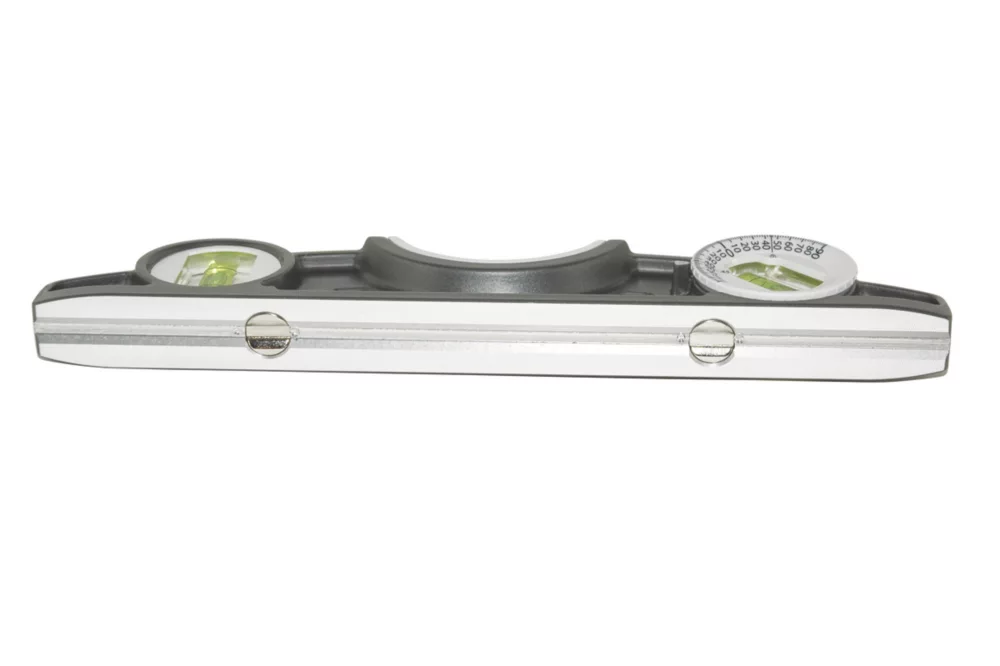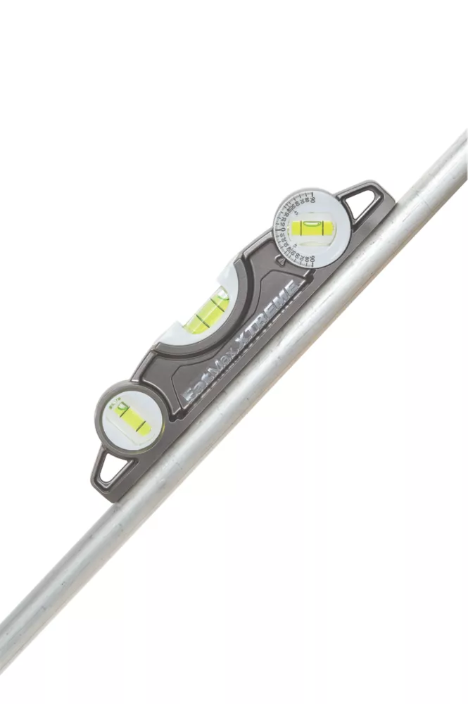 Die-cast aluminium frame. High quality scaffold level offering best in class accuracy of 0.5mm/m. With angle setting and V-groove base with rare earth magnets. Perfect for pipe work and scaffolding.