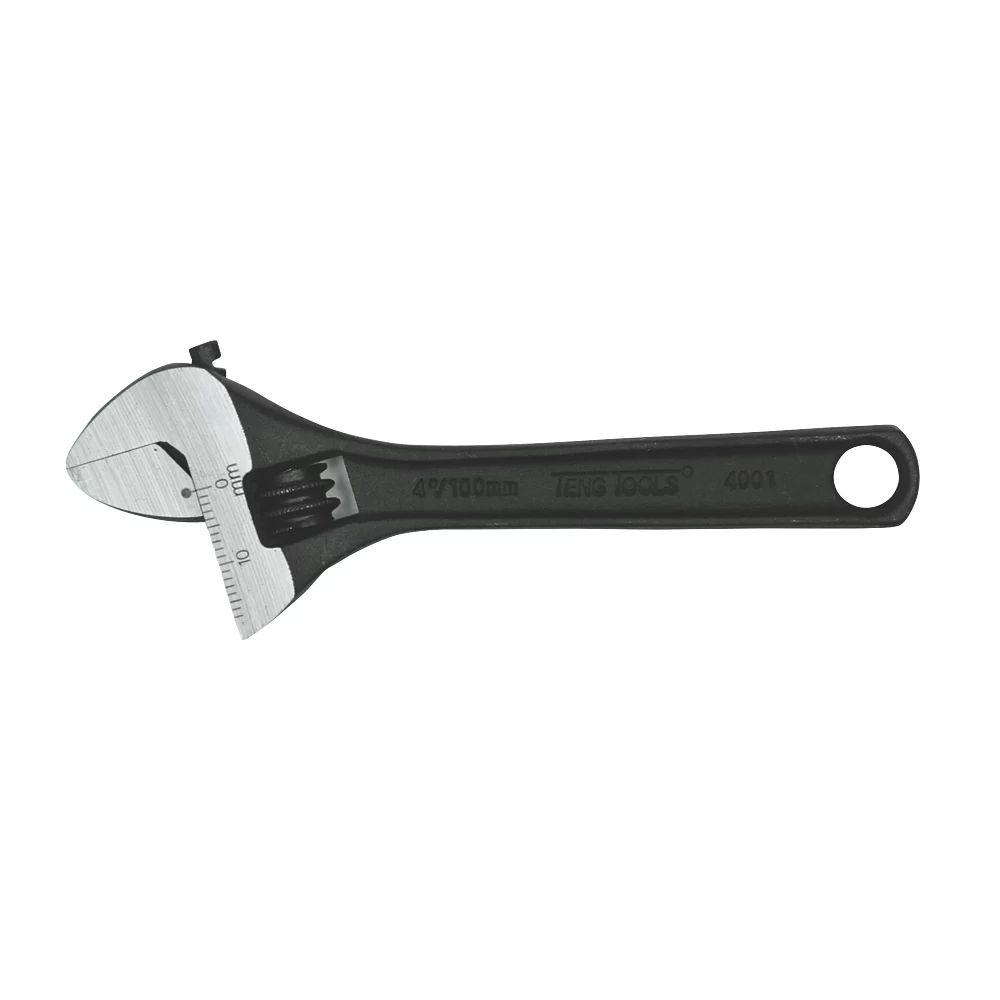 Industrial adjustable wrench made of chrome vanadium steel. 15° jaw allows the wrench to be used in narrow areas as only 30° turning is needed.