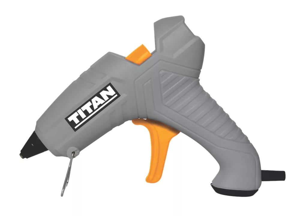 Lightweight and easy to use hot melt glue gun. Suitable for use on plastics. Includes a 1-piece stand.