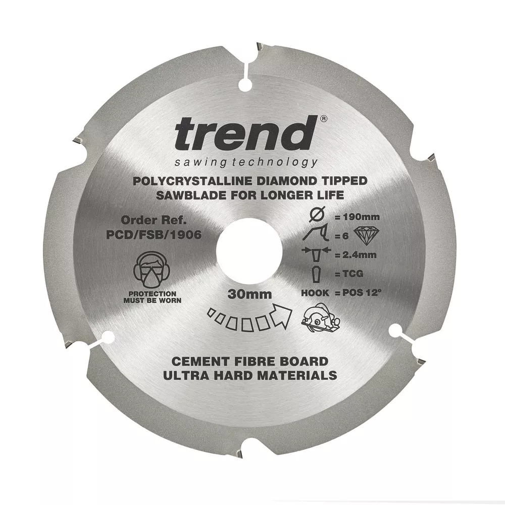 PCD-tipped sawblade for use on cement fibreboard, solid laminate and ultra-hard materials. Ideal for Hardie board cladding, Aqua board, Minerit, Eternit and MDF.