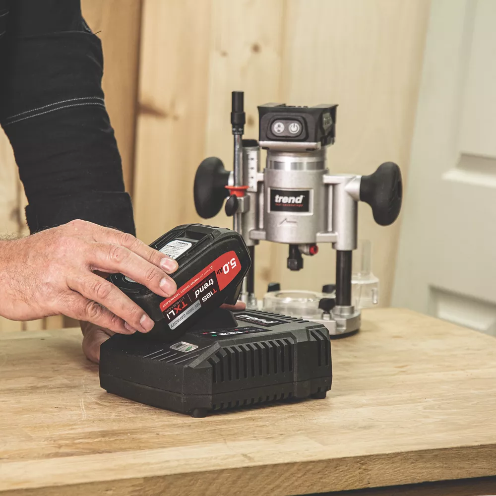 Fast, efficient high-performance 6A charger offers maximised productivity and battery health. Integrated air cooling technology draws in air and dissipates heat, ensuring temperature stability throughout the charging process. Also features protective side vents to prevent dust and debris ingress and easy-to-read LED charge indicators. Enables efficient charge times of 32 mins (2Ah), 48 mins (4Ah) and 54 mins (5Ah). For use with all Trend 18V Li Ion batteries.
